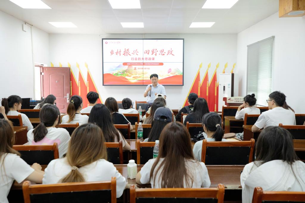 刘强结合宝胜村实际,以丰富案例解读产业、人才、文化、生态、组织“五大振兴”与“五位一体”战略的紧密关联,阐述乡村振兴对实现中国现代化的重要意义。他指出,在人工智能快速发展的背景下,大学教育应注重思维方式与认知能力培养。他鼓励同学们要锻炼实践本领,掌握田野调查方法,用脚步丈量大地,获取真实可靠的第一手资料;要树立远大理想,立足自身实际与时代需求,锚定人生奋斗目标,做好职业生涯规划;要树立正确的世界观、人生观和价值观,脚踏实地,做勇于实践的“实干家”,将个人成长融入民族复兴的伟大征程,在新时代的广阔舞台上锤炼自我,努力成为堪当民族复兴重任的时代新人,为实现中华民族伟大复兴贡献青春力量。