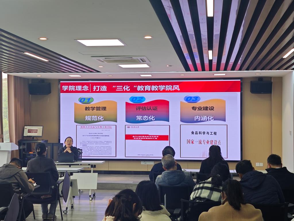 关于开展“全员课堂教学大练兵”第三轮深化活动实施方案》的工作要求,学院邀请四川省学术与技术带头人后备人选、成都市农业科技专家服务团团长兼首席专家、四川省第三届食品安全专家委员会委员、国家自然科学基金同行评审专家、四川省食品教学指导委员会委员、食品与生物工程学院院长王新惠教授,在学院1306教室向全院教师开展了一堂生动的“基于OBE理念提升教师教学能力”专题培训讲座,讲座由院长屈陆主持。