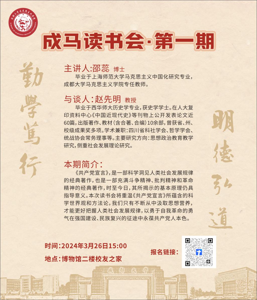 本期简介:《共产党宣言》,是一部科学洞见人类社会发展规律的经典著作,也是一部充满斗争精神、批判精神和革命精神的经典著作,时至今日,其所揭示的基本原理仍具指导意义。本次读书会将重温《共产党宣言》所蕴含的科学世界观和方法论,我们只有不断从中汲取思想营养,才能更好把握人类社会发展规律,以勇于自我革命的勇气在强国建设、民族复兴的征途中永葆共产党人本色。