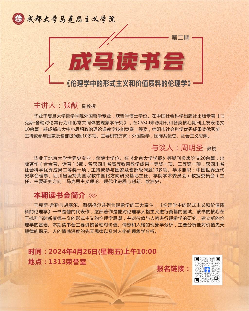 本期简介:马克斯·舍勒与胡塞尔、海德格尔并列为现象学的三大泰斗,《伦理学中的形式主义和价值质料的伦理学》一书是他的代表作,这部著作是他对伦理学人格主义进行奠基的尝试。该书的核心在于批判当时新康德主义的形式主义的伦理学思潮,并对价值与人格进行现象学的研究,建立新的伦理学的基础。本期读书会主要讲授舍勒对价值、情感和人格的现象学分析,主要分析他对价值先天规律的揭示、人的情感深度的先天规律以及对人格的现象学分析。