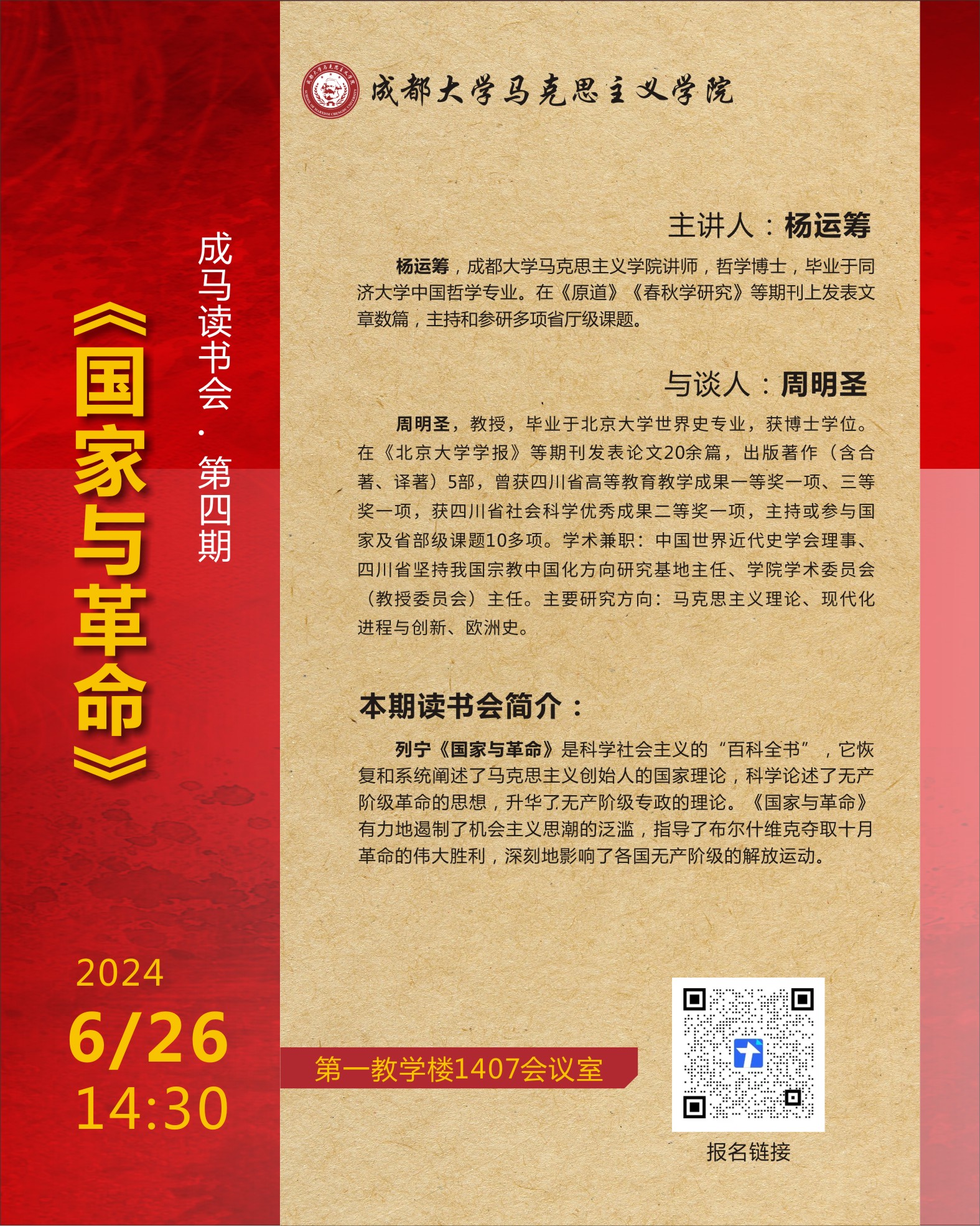 本期读书会简介:列宁《国家与革命》是科学社会主义的“百科全书”,它恢复和系统阐述了马克思主义创始人的国家理论,科学论述了无产阶级革命的思想,升华了无产阶级专政的理论。《国家与革命》有力地遏制了机会主义思潮的泛滥,指导了布尔什维克夺取十月革命的伟大胜利,深刻地影响了各国无产阶级的解放运动。