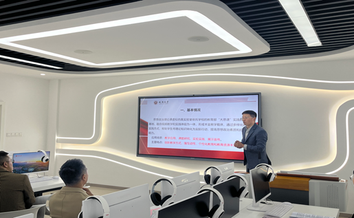 首先,院长屈陆在1307思想政治理论课虚拟仿真实验室汇报虚拟仿真实验室数字赋能宣传教育特色的基本情况,向各位领导与评审专家介绍实验室关于教学应用、课题研究、实验实践、展示宣传的基本特点。其中重点表达了虚拟模拟实验与思想政治理论课相结合的优点。例如:创新教学方式、互动性强、个性化教育、教育资源丰富。这些优点可以为学生提供更丰富的学习内容,让他们更好地了解和掌握相关知识。同时,这些资源也可以为教师提供更多的教学素材,帮助他们更好地进行思政课的教学活动。随后,屈陆院长对实验室建设的工作特点、获得荣誉及媒体报道情况、对未来发展的计划进行了汇报。