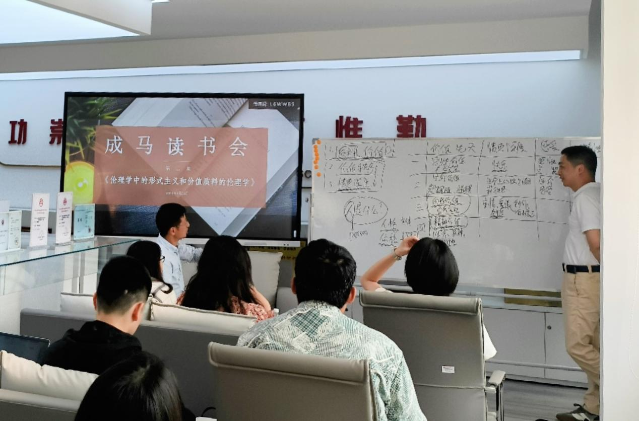 积极发挥组织及专业优势,在第一教学楼1313荣誉室与校青年马克思主义研究协会联袂举办了第二期成马读书会。此次读书会聚焦马克斯·舍勒的经典之作《伦理学中的形式主义和价值质料的伦理学》,张猷副教授主讲,学院院长屈陆教授担任与谈人,樊英杰副院长主持。活动吸引了马院青年博士教师、研究生、部分本科生以及青年马克思主义研究会成员的热情参与,更有兄弟院校马原专业的研究生同学慕名而来,共同探索道德哲学的奥秘,营造了浓厚的学术氛围。