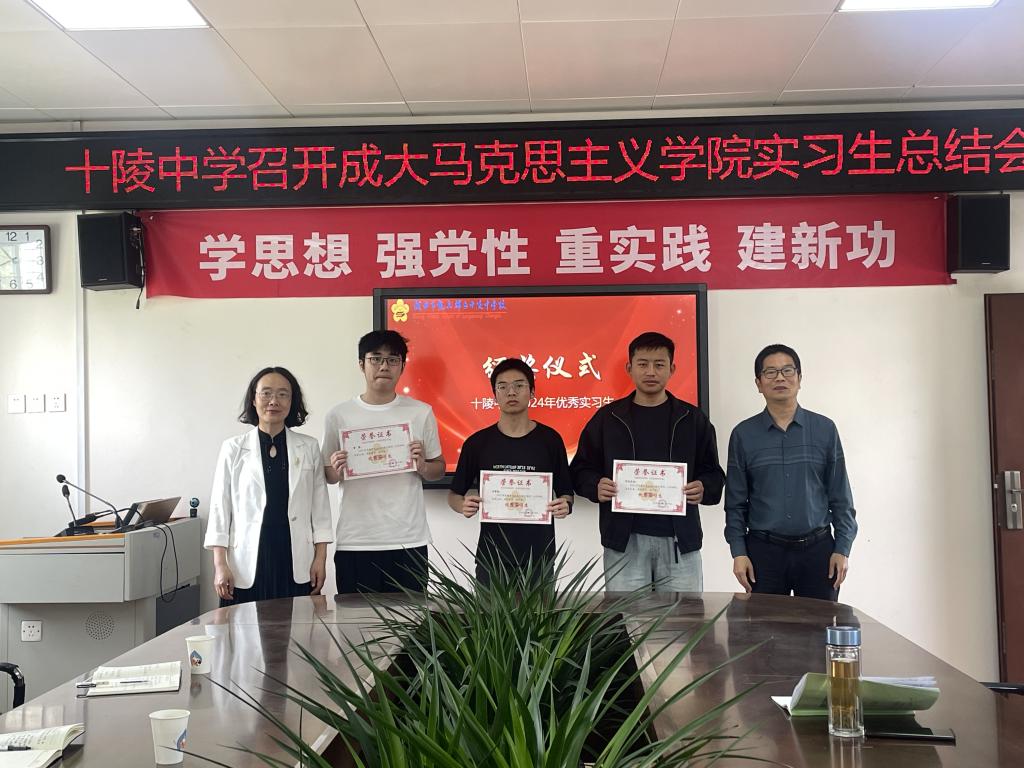 会议最后,十陵中学校长何远忠给优秀实习生进行了颁奖,给在实习中表现优秀的三位学生马帮勇、曾荥、阿吉色初以鼓励。