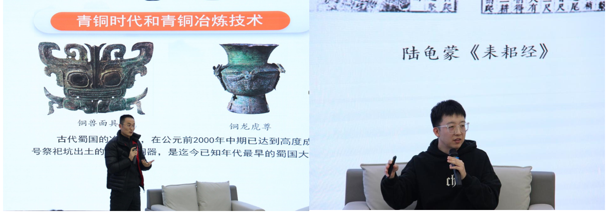 分享会上,朱昊博士首先对“科学”与“近代科学”、“技术”与“科学”的关系、“辉格式”的科学史以及“欧洲中心论”与李约瑟问题等关键问题进行了阐释。随后从中国古代技术成就,“农”、“医”、“天”和“算”四个方面的科学成就,生动地介绍了中国古代科技的发展历程,带领大家走进了这部精彩的科技史著作。在朱昊博士的讲解中,大家仿佛穿越到古代,见证青铜时代的繁荣与精湛的青铜冶炼铸造技术,领略精细耕作的农耕文明与农业技术的发展。朱昊博士紧接着介绍了中国传统医药学体系的形成伴随着古人对于身体和疾病的认识,以及植物学、化学知识的积累。中国传统天文学与中国传统算学密切相关,二者都重视其在国计民生中的实际应用。