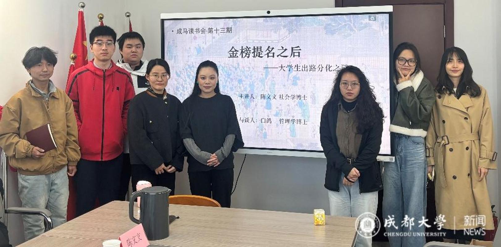“成马读书会”第十三期于第一教学楼1312室顺利举行。本次读书会聚焦社会学著作《金榜题名之后》,深入探讨了当代大学生的发展困境与出路。学院讲师、社会学博士陈文文老师担任本次读书会主讲人,成都理工大学香蕉视频