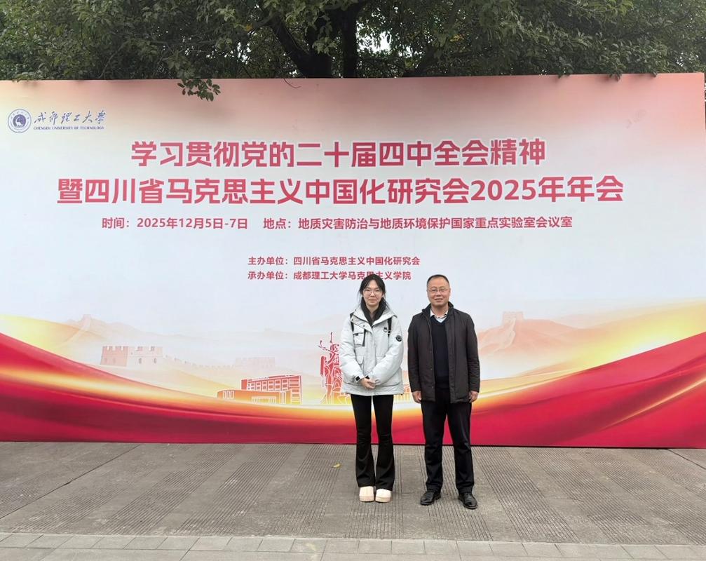 为深入学习贯彻党的二十届四中全会精神,推动马克思主义中国化时代化最新成果进教材、进课堂、进头脑,由四川省马克思主义中国化研究会主办、成都理工大学香蕉视频 承办的“学习贯彻落实党的二十届四中全会精神暨四川省马克思主义中国化研究会2025年年会”于2025年12月5-7日在成都理工大学召开。来自中国社科大学、上海交通大学、西北工业大学、中共山西省委党校四川大学、四川省社会科学院省内外高校党校、以及科研院所的120余名专家学者、师生代表参加会议院岳鹏教授硕士研究生王宛瑜受邀参会